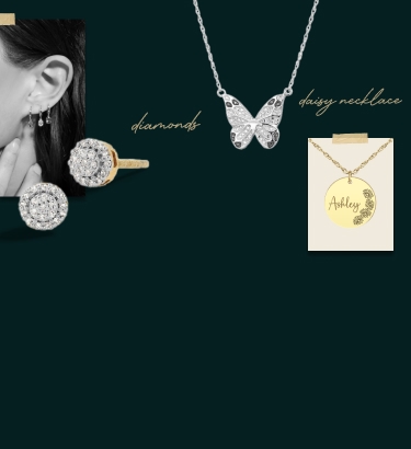 Celebrate April birthdays with diamond stones and daisy birth flower jewelry.
