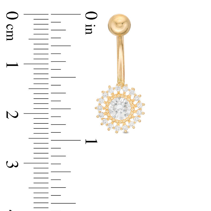 Have a question about 10K Solid Gold CZ Frame Sun Belly Button Ring - 14G 3/8"?