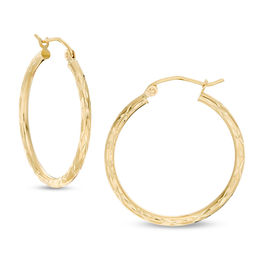 27mm Diamond-Cut Tube Hoop Earrings in 14K Gold
