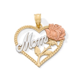 10K Gold Mom Rose Heart Tri-Tone Charm