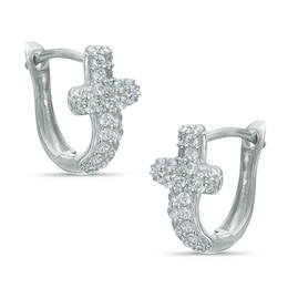 Solid Sterling Silver Diamond-Cut Cross Dangle Huggies